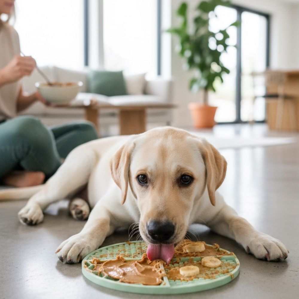 🥣 Fill the Lick Mat with their favorite food: kibble, wet food, spreadable snacks, fruit, or supplements.